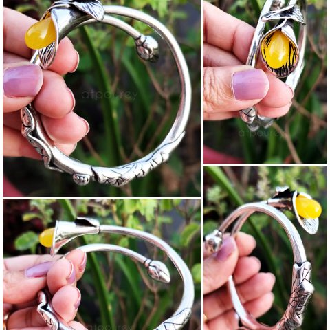 Adjustable Bracelet with 999 Stamped Black enamel work