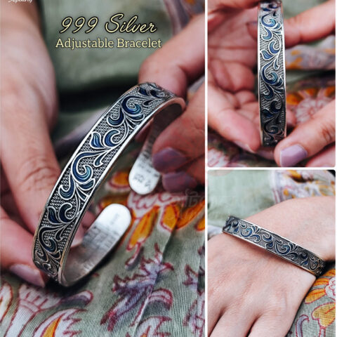 Adjustable Silver Bracelet – Blue – Chalcedony