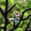 These adjustable finger rings are made of copper with natural zirconia stones.